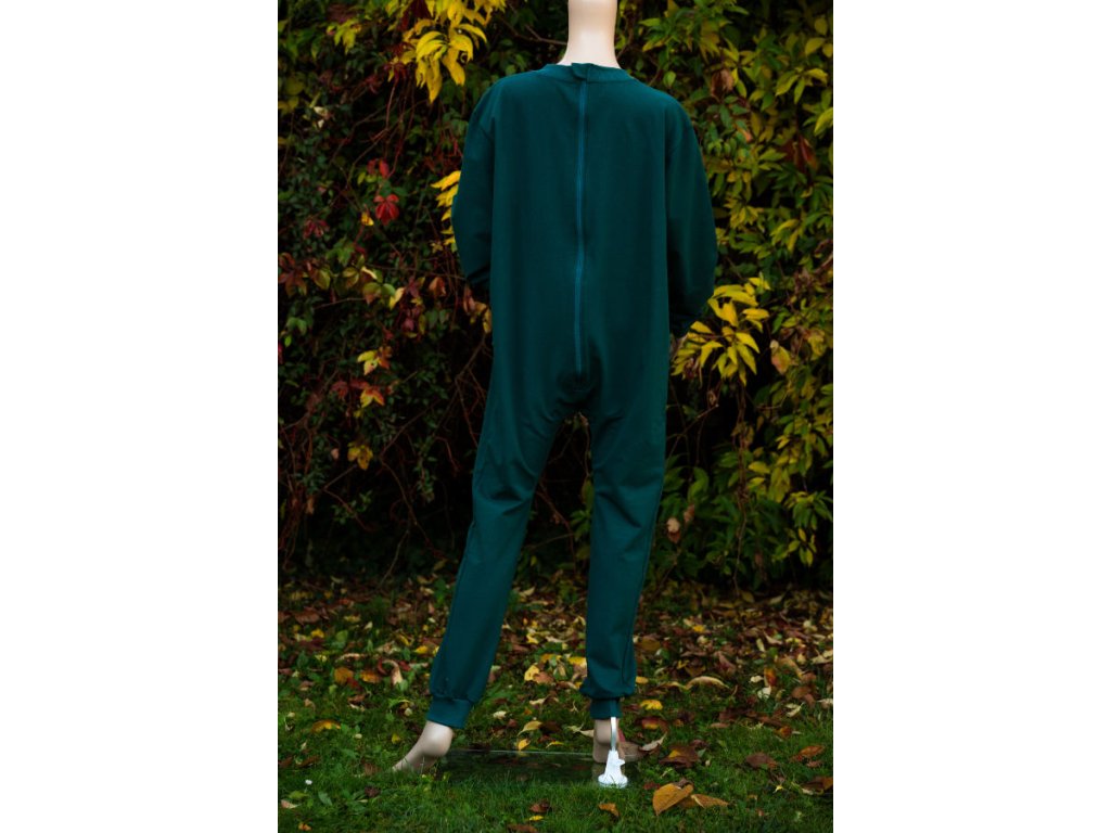Tento nemocniční overal pro pacienty je vyroben z lehkého úpletu, který má gramáž materiálu 180 g, je to chladnější materiál vhodnější pro nošení v létě. Overaly vyrábíme ve velikostech S–XXXL. Na výběr je také z několika barev materiálu – Mintová, Světlá káva, Smetanová, Petrolejová. Samotnou barvu je možné ještě kombinovat se vzory – Motýli a květiny, Kostičky, Houby, Kytičky hnědé, Lidovka, případně zvolit variantu bez vzoru. Overal je vhodný pro náročné praní. Zip na zadním díle je všitý s tenkým podložením, které je u krku založeno tak, aby jezdec zipu netlačil. Spodní část zipu je zpevněna druhou vrstvou, aby se zabránilo co nejvíce trhání. Naše overaly nejčastěji využívají pacienti v nemocnicích, domovech pro seniory a domovech s pečovatelskou službou. Jsou vhodné jak pro ležící, tak neležící pacienty.