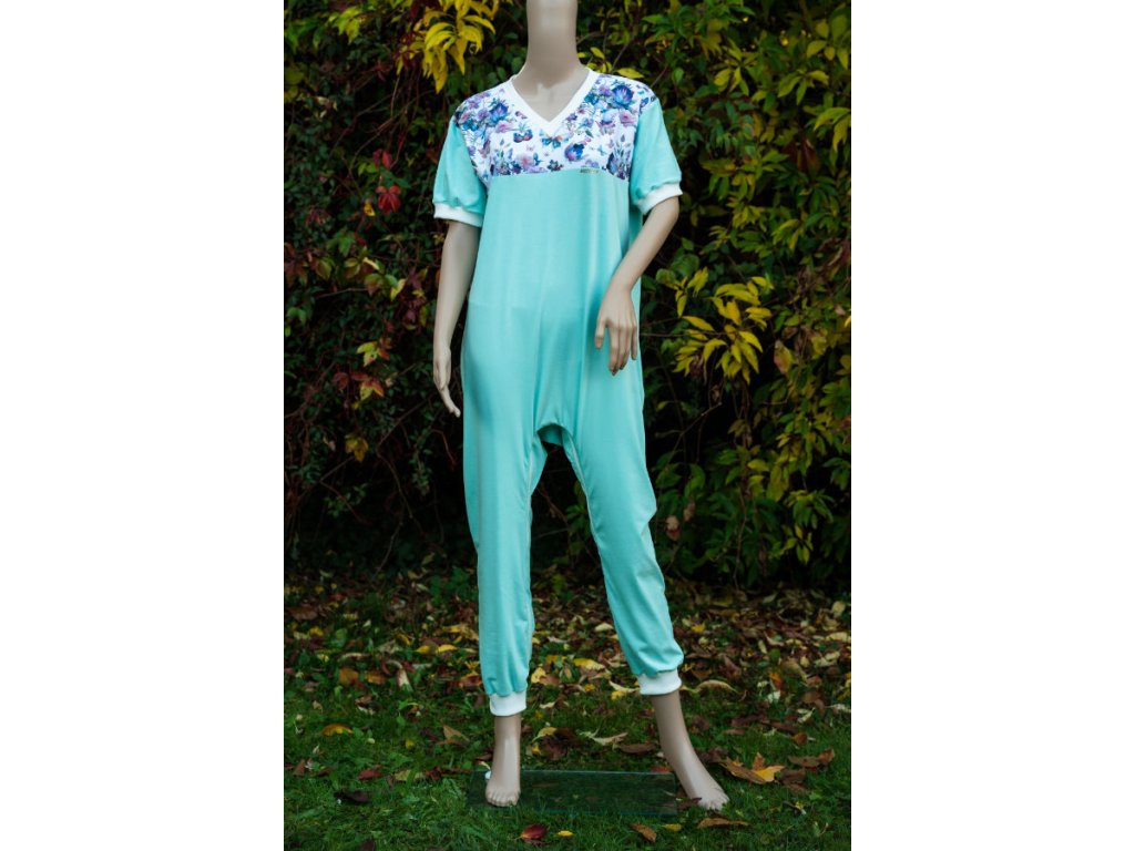 Tento nemocniční overal pro pacienty je vyroben z teplákoviny s gramáží 220 g. Overaly vyrábíme ve velikostech S–XXXL. Na výběr je také z několika barev materiálu – Olivová, Láhvově zelená, Světle hnědá, Meruňková. Samotnou barvu je možné ještě kombinovat se vzory – Mytýli a kytky, Pivoňky, Houby, Kostičky, Kytičky hnědé, Lidovka, případně zvolit variantu bez vzoru. Overal je vhodný pro náročné praní. Zip na zadním díle je všitý s tenkým podložením, které je u krku založeno tak, aby jezdec zipu netlačil. Spodní část zipu je zpevněna druhou vrstvou, aby se zabránilo co nejvíce trhání. Overal je vhodný pro pacienty ležící, proto na zádech není žádný šev. Naše overaly nejčastěji využívají pacienti v nemocnicích, domovech pro seniory a domovech s pečovatelskou službou. Jsou vhodné jak pro ležící, tak neležící pacienty.