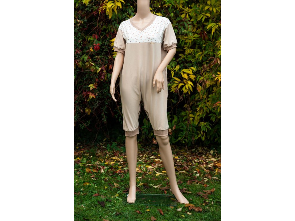 Tento nemocniční overal pro pacienty je vyroben z teplákoviny s gramáží 220 g. Overaly vyrábíme ve velikostech S–XXXL. Na výběr je také z několika barev materiálu – Olivová, Láhvově zelená, Světle hnědá, Meruňková. Samotnou barvu je možné ještě kombinovat se vzory – Mytýli a kytky, Pivoňky, Houby, Kostičky, Kytičky hnědé, Lidovka, případně zvolit variantu bez vzoru. Overal je vhodný pro náročné praní. Overal je vhodný pro pacienty ležící, proto na zádech není žádný šev. Naše overaly nejčastěji využívají pacienti v nemocnicích, domovech pro seniory a domovech s pečovatelskou službou. Jsou vhodné jak pro ležící, tak neležící pacienty.